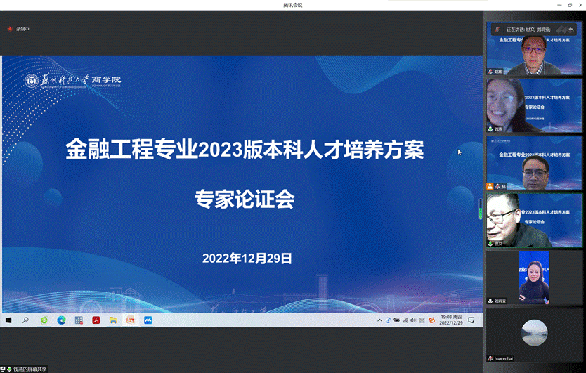 为持续深化金融工程专业公司产品改革,不断完善人才培养体系,创新人才培养模式,加大产教融合力度。太阳成集团tyc33455cc于12月29日线上召开了2023版金融工程本科人才培养方案专家论证会。此次会议特邀南京财经大学党委常委、副董事长华仁海教授,上海财经大学金融公司党委书记刘莉亚教授,创元期货股份有限公司董事长吴文胜先生,点宽网络科技有限公司副总毛朝选先生等多位专家为太阳成集团tyc33455cc人才培养方案进行论证指导。