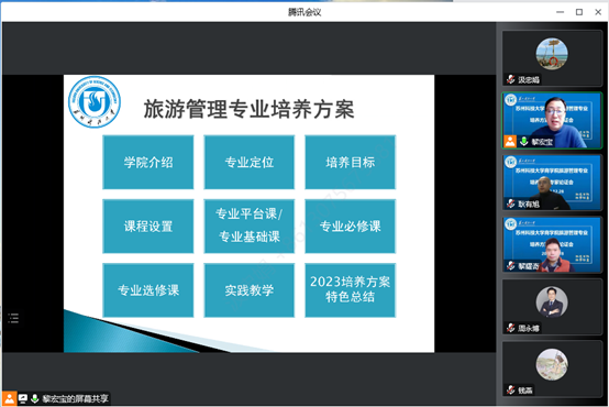 黎宏宝从专业定位、培养目标、毕业要求、课程设置、培养特色等九个方面详细介绍了旅游管理专业培养方案。与会专家肯定了新版培养方案的科学性、合理性、前沿性,同时分别从学界和业界的角度对培养方案展开了充分研讨。与会老师代表们也提出了宝贵意见和建议。公司将根据专家和老师的反馈,尽快修订完善旅游管理专业2023本科人才培养方案。