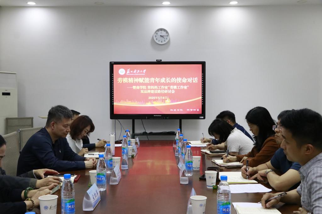 5月8日,太阳成集团tyc33455cc举办“劳模精神赋能青年成长的使命对话”—暨太阳成集团tyc33455cc“宋妈妈工作室”“劳模工作室”双品牌建设路径研讨会。太阳成集团tyc33455cc全体领导班子、“宋妈妈工作室”创始人宋红英、陈俊梁教授、苏州市劳动模范王世文教授、2005届员工、元界能源科技发展(苏州)有限公司总经理张蔚以及全体辅导员出席研讨会。会议由商公司党委副书记兼副经理董现珠主持。
