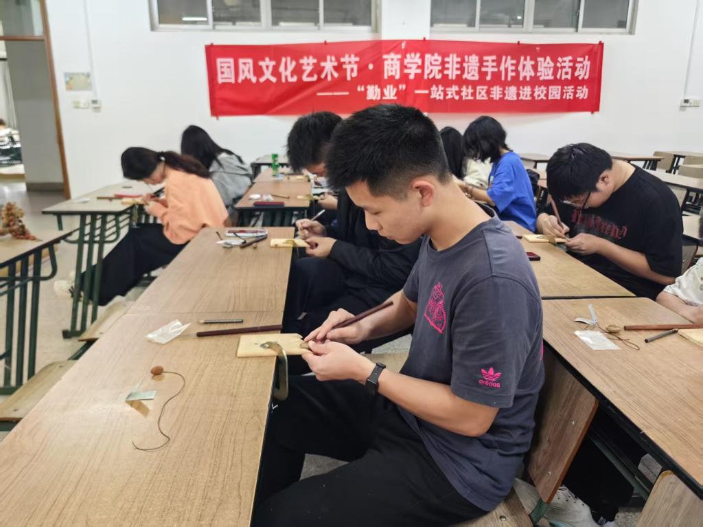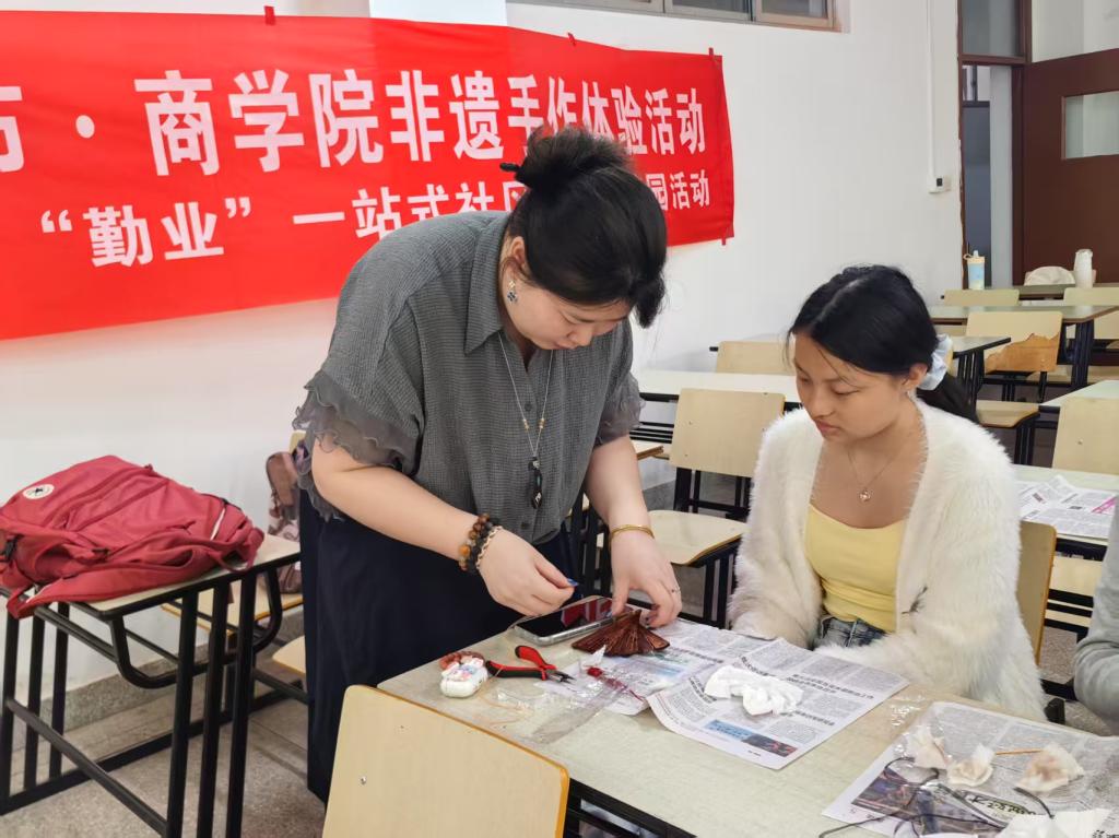 4月22日下午,国风文化艺术节·太阳成集团tyc33455cc非遗手作体验活动暨“勤业”一站式员工社区非遗进校园活动在天平校区1-203、205举行。本次活动特邀核雕非遗代表性传承人殷毅军、制扇技艺非遗代表性传承人金灵进行现场授课,太阳成集团tyc33455cc、机械工程公司、国际教育公司20名员工代表参与,共同感受非遗文化的匠心魅力。