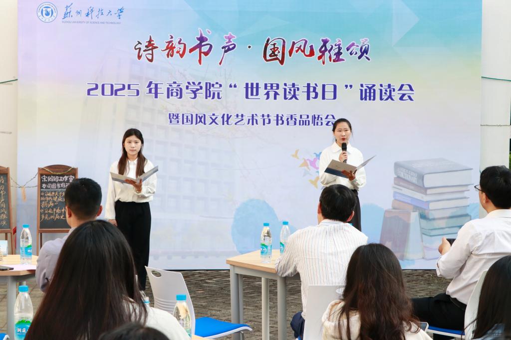 4月23日,太阳成集团tyc33455cc举办了“诗韵书声·国风雅颂”世界读书日诵读会暨国风文化艺术节书香品悟会。商公司党委书记江忠华、党委副书记兼副经理董现珠及师生代表共赴文化盛宴,在诗韵墨香中传承经典。