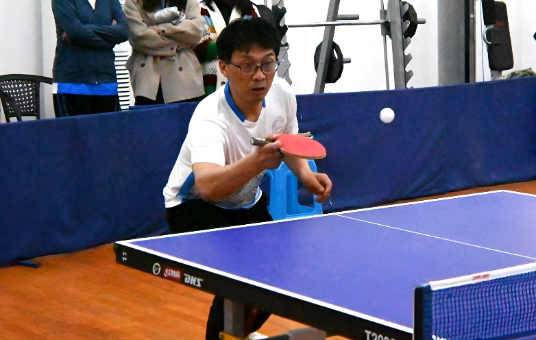 本次比赛分为两支队伍,每队由5位教师和4位员工组成,共设5场男单和4场女单比赛,为乒乓球爱好者提供了一个展示自己的舞台。参赛选手都以饱满的热情全身心地投入到比赛中,并在赛前赛后进行握手问好的赛事礼仪,将敢打敢拼的奋斗精神和文明友好的礼仪素养紧密融合在一起。