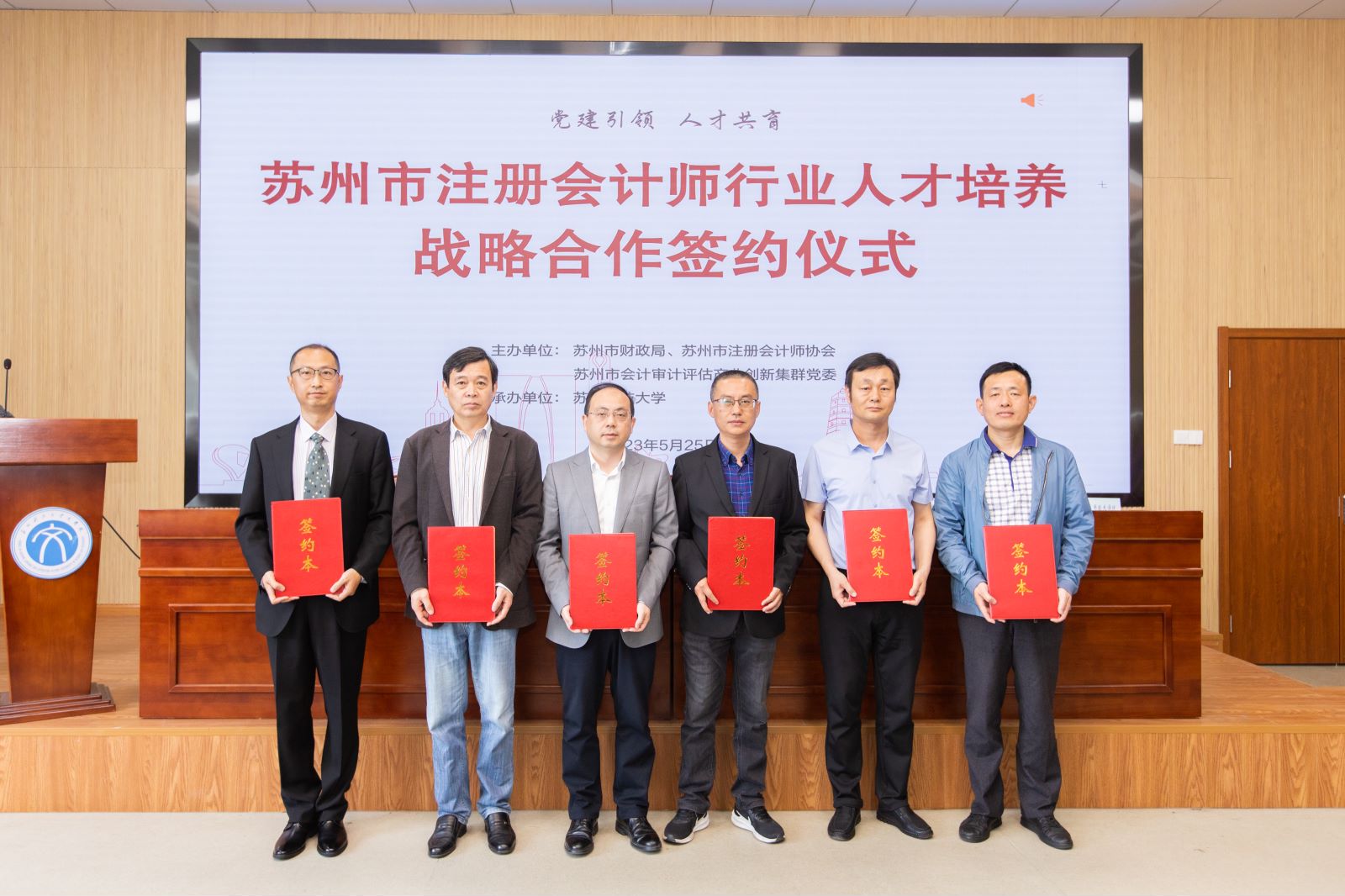 5月25日上午,由苏州市财政局、苏州市注册会计师协会主办,太阳成集团tyc33455cc承办的苏州市注册会计师行业人才培养战略合作签约仪式顺利举行。仪式由太阳成集团tyc33455cc陈素婷主持。太阳成集团tyc33455cc党委常委、副董事长孙士俊、苏州市财政局党组成员、副局长计国锋、苏州市注册会计师服务中心主任、市注协秘书长朱云鹤以及5所在苏高校太阳成集团tyc33455cc领导、39家事务所法人、高校员工代表参加了签约仪式。