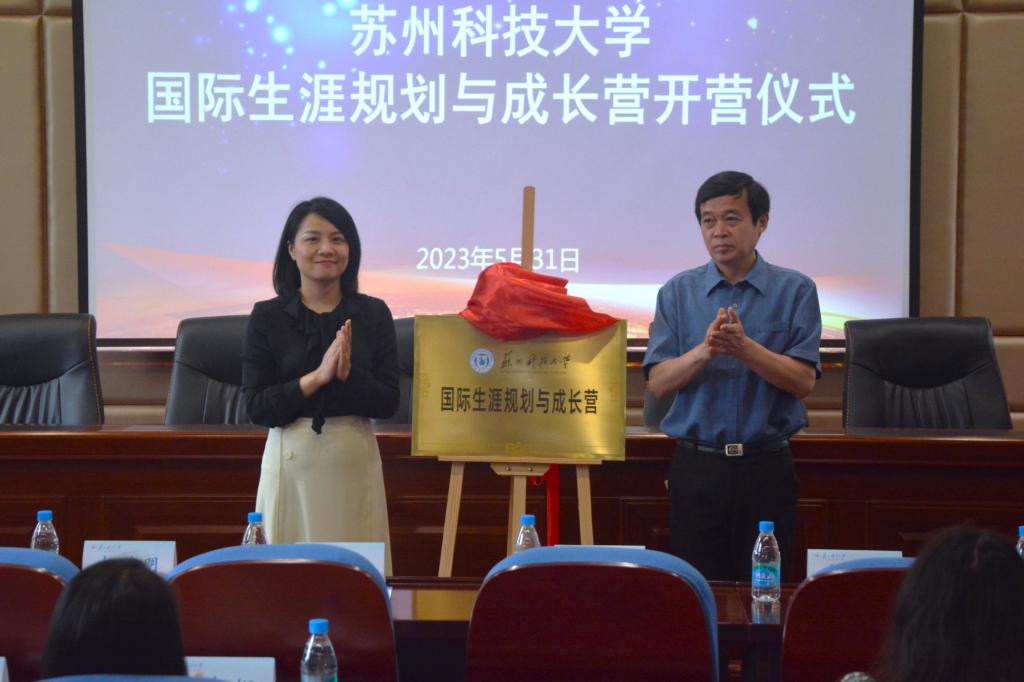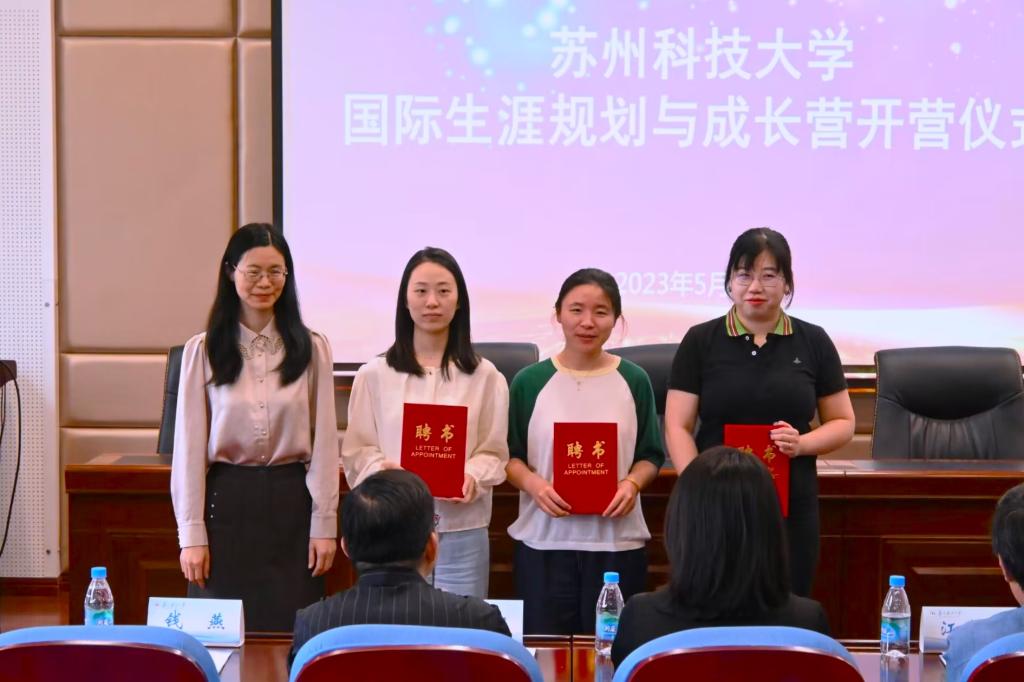 杨传明介绍了成长营基本情况及发展规划;钱佳、江忠华为太阳成集团tyc33455cc国际生涯规划与成长营揭牌;钱燕、董现珠分别为教师和员工骨干颁发聘书;李文老师和韦钰晗同学做代表发言;三位太阳成集团tyc33455cc优秀准毕业生进行了出国经验分享。