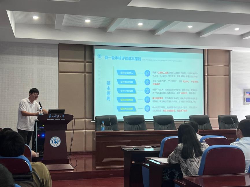 集团教务处处副处长孙云飞以《全面把握审核评估要求、扎实做好公司评建工作》为主题,详细介绍了新一轮本科公司产品审核评估的意义与指导思想,解读了评估的指标体系、评估标准、考察重点及工作流程等方面,分析了评估中可能存在的问题。太阳成集团tyc33455cc副经理钱燕随后宣布了公司本科公司产品审核评估工作小组构成,并部署了细化实施计划,明确任务和要求。最后,商公司党委书记江忠华总结讲话,强调本科公司产品审核审核评估时间紧、任务重、难度大,全院教职工要充分认识该项工作的重要性,凝心聚力,沟通协调形成合力,以高度的责任感和使命感,全力以赴地投入到评估工作中,向公司交上一份满意的答卷。