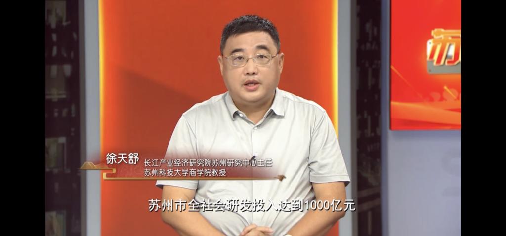 2023年8月19日,徐天舒教授与苏州市委党校方伟副董事长、苏州大学东吴智库屠立锋研究员共同受苏州广电台《共筑美好生活·苏城议事厅》之邀, 以“勇立潮头开创未来在推进中国式现代化走在前做示范中当好排头兵”为主题,解读中共苏州市第十三届委员会第五次全体会议精神。