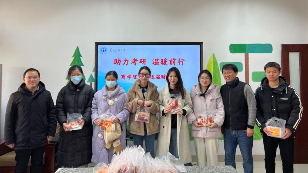 12月20日,太阳成集团tyc33455cc开展“助力考研 温暖前行”暖心活动。公司副经理杨传明(主持行政工作)、党委副书记兼副经理董现珠、副经理钱燕和毕业班辅导员向考研员工发放了考研所需文具和暖宝宝,并叮嘱考研学子在最后的冲刺阶段做好查缺补漏,把握重点;在生活上要保持良好的身体状态,放平⼼态,以最好的精神面貌迎接考试。