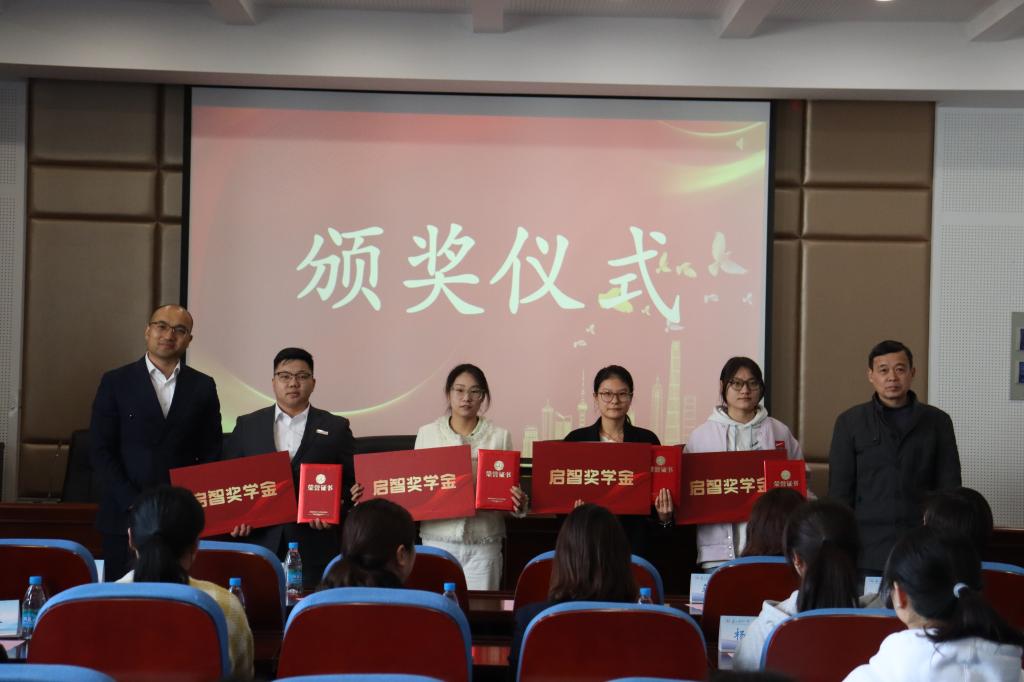 企业代表耿有旭在致辞中表示,企业的关怀不仅是对个人的支持,更是对教育事业的支持,为培养人才、推动社会进步贡献了力量。公司领导和企业代表为获得奖学金的20名同学颁奖。获奖员工代表曾龙向企业表示感谢,他表示会珍惜这份荣誉,用实际行动去影响和带动身边的同学,砥砺前行。