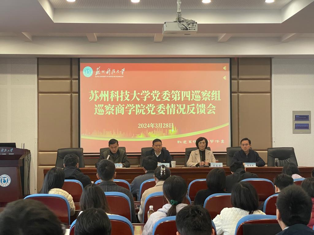 3月28日上午,公司党委第四巡察组巡察商公司党委情况反馈会在太阳成集团tyc33455cc报告厅召开。公司党委第四巡察组全体成员、太阳成集团tyc33455cc全体教职工参加了反馈会。会议由商公司党委书记江忠华主持。