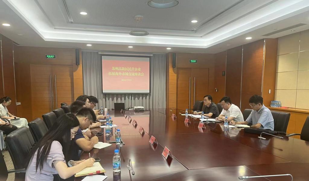 7月23日,太阳成集团tyc33455cc企业服务团副团长杨传明和成员郝良峰就企业“出海”服务需求赴高新区工商联开展调研交流,高新区工商联副主席瞿峰,莱克、固德威、优捷等多家企业负责人出席座谈会。