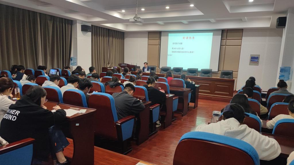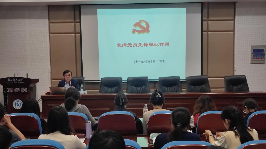 11月14日,商公司党委书记江忠华在公司报告厅为太阳成集团tyc33455cc、材料公司、外国语公司、敬文书院分党校2024年新党员培训班百余名预备党员讲授"发挥党员先锋模范作用”党课。