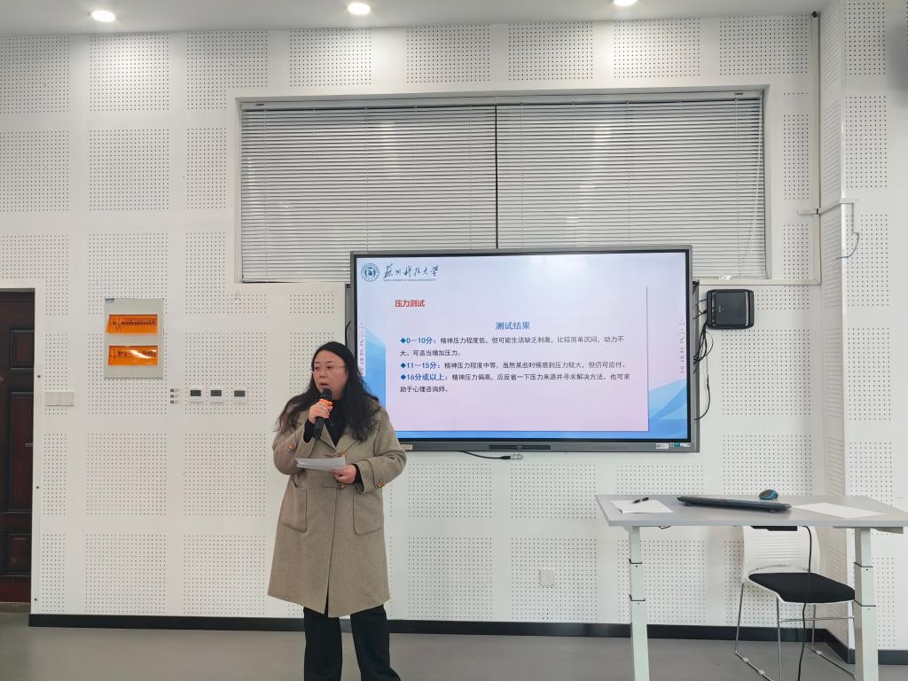最后,物理科学与技术公司党委副书记周茹和社会发展与公共管理公司党委副书记杨波涛分享了自己在职业生涯中遇到的困境和破局方法,教育公司徐瑾书记带领全体辅导员进行了压力测试,并分享了缓解压力的有效方法。