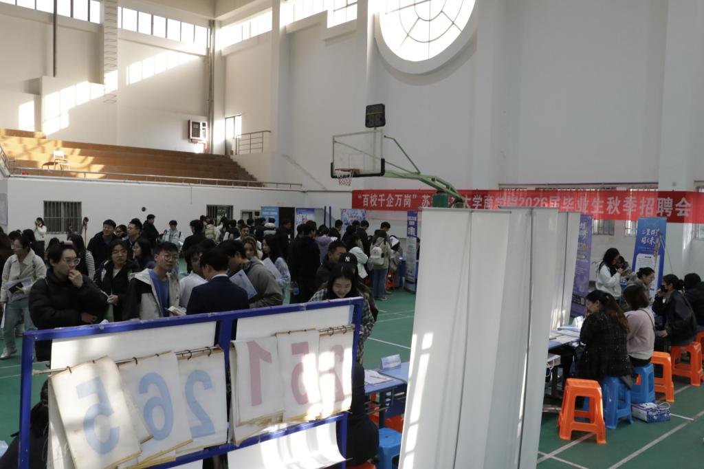 11月26日下午,太阳成集团tyc33455cc于教工之家成功举办“百校千企万岗”2026届毕业生秋季招聘会,为毕业生搭建高质量就业平台,助力其开启职业新征程。此次招聘会吸引中海物业、德熙化工等 60 家优质企业,涵盖多个行业领域,共提供超过800个就业岗位。岗位类型丰富多元,精准匹配公司不同专业毕业生的求职需求,为学子们带来丰富选择。