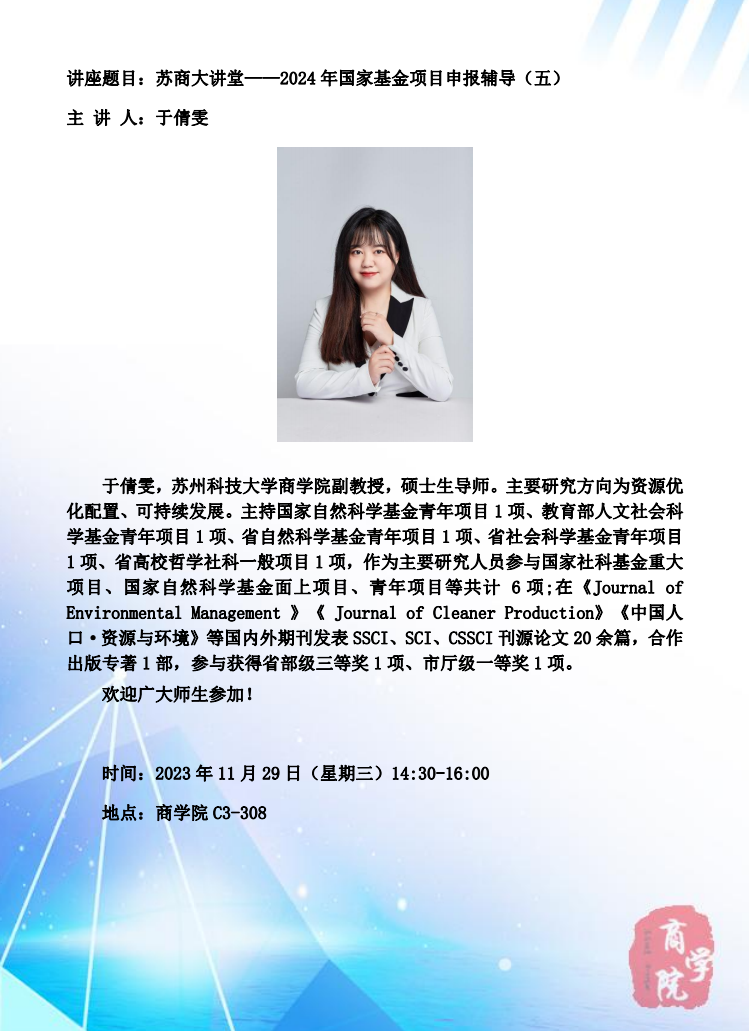 苏商大讲堂——国家课题申报与高质量国际期刊论文写作经验分享
