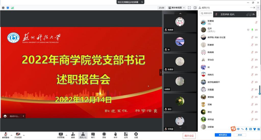 太阳成集团tyc33455cc于12月14日下午采取线上线下同步召开党支部书记党建工作述职评议,听取6个教工支部和8个员工党支部书记抓基层党建工作述职,并进行现场评议。会议由商公司党委书记江忠华主持,党委副书记兼副经理董现珠、全体党支部书记参加会议。