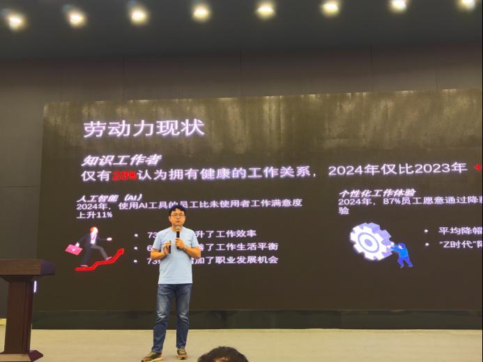 在何樱总经理的主题分享之后,公司高管卞正和刘晶晶分别就人力资源领域的最新前沿话题以及企业出海用工的主题进行了分享。卞正先生深入探讨了当前人力资源领域的新趋势、新技术以及新理念,让师生们紧跟行业前沿动态,拓宽了视野。刘晶晶女士则聚焦于企业出海用工这一热点问题,分享了企业在海外拓展业务过程中面临的用工挑战、法律法规风险以及跨文化管理等问题,并结合实际案例提出了相应的解决方案和应对策略,为相关领域的同学提供了宝贵的经验借鉴。